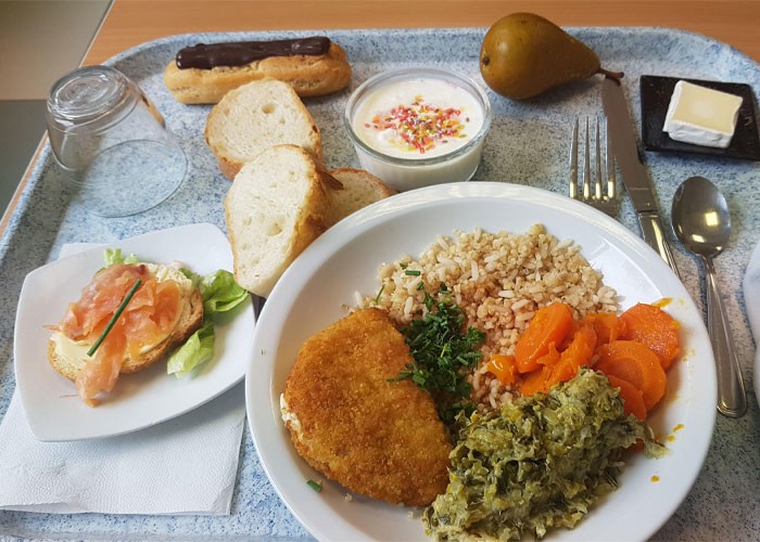 2. Безкоштовний шкільний обід у Швеції. Смажений лосось, смажена картопля в травах, запечені в меду овочі з козиним сиром