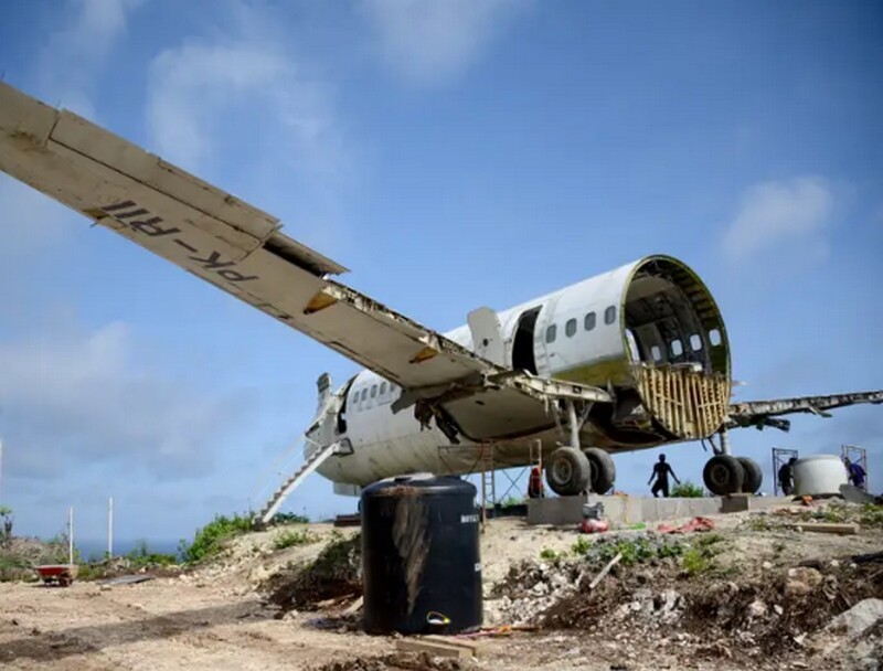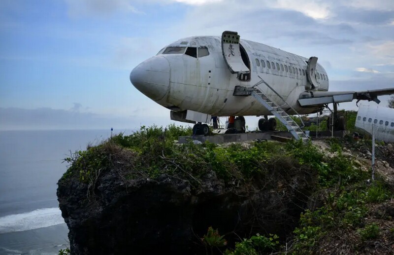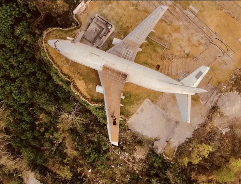 Одне з крил літака перетворилося на терасу з мостом, що нависає над скелею