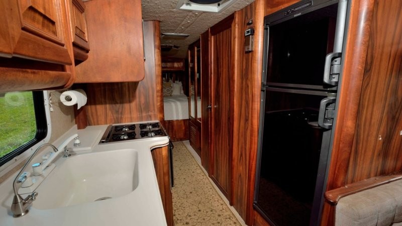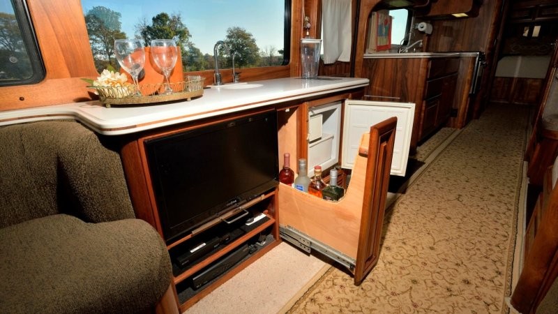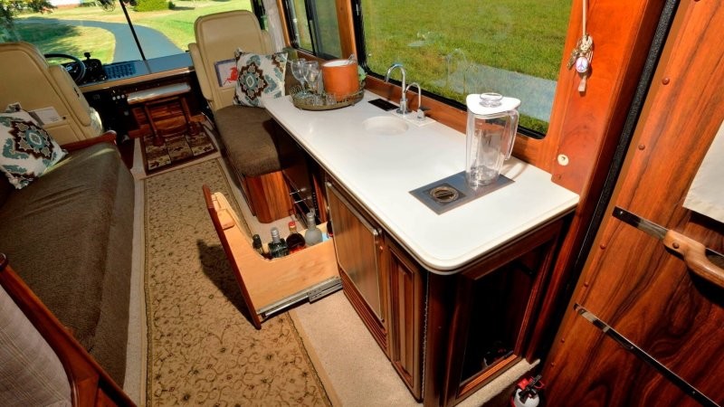 Зараз на борту машини обладнано повноцінну кухня, спальня та туалет з душовою кабінкою. Тут також є зона відпочинку з барною стійкою.