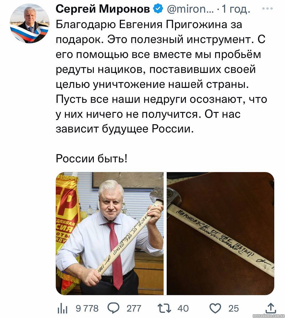 Безглуздий депутат безглуздої партії вихваляється знаряддям катувань і страт, яким російські садисти забивають до смерті своїх полонених.