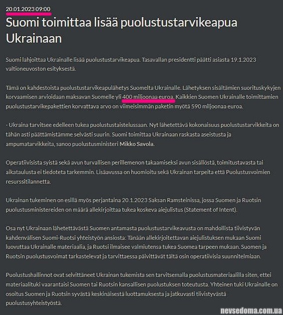 - Фінляндія направить Україні новий пакет допомоги. Але що всередині — секрет.