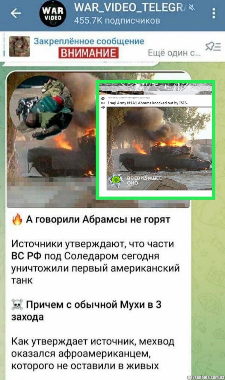 - Русня як завжди обосралась і написала про першого знищеного Abrams під Соледаром.