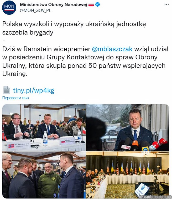 - Польща готова з нуля оснастити та навчити нову бригаду ЗСУ, — міністр оборони Маріуш Блащак за підсумками Рамштайна.