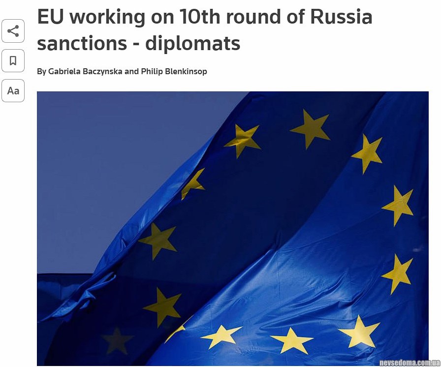 - Країни Євросоюзу працюють над 10-м пакетом санкцій, який набуде чинності прямо на річницю війни, — Reuters.