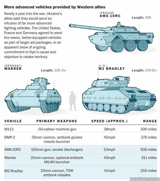 - Як нові бойові машини, які направлять в Україну союзники, можуть допомогти на війні? Аналітика The Washington Post.