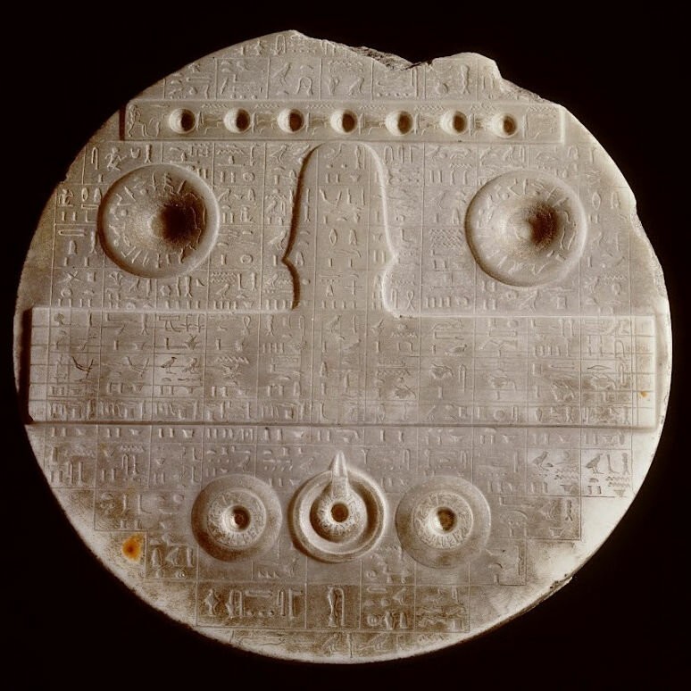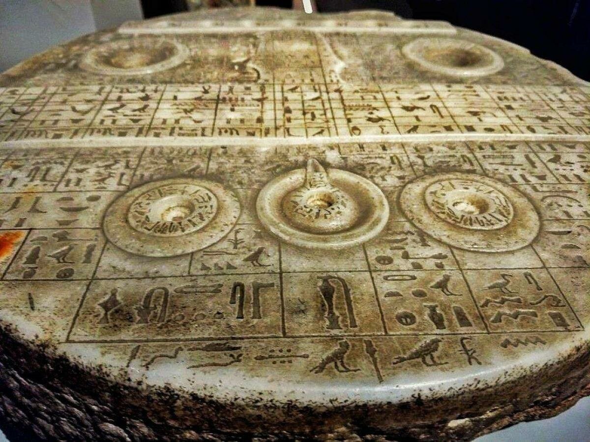Перша інформація про нього з'явилася 1828 року, коли його придбав голландський музей, за іншою версією 1830 року, коли його купив Музей Швеції. Проте сьогодні цей артефакт зберігається у музеї старовини в Лейдені, що в Нідерландах і дивує відвідувачів своїм незвичайним виглядом. У мережі з приводу цього предмета розгорялися не жартівливі суперечки, а все через те, що цей артефакт дуже схожий на панель управління якогось механізму або зорельота. Виконаний предмет з алебастра і зовні виглядає як диск. Діаметр його становить 49 см, а в висоту артефакт близько 13 см. При цьому важить предмет 75 кг, що до речі дуже дивно, хоча можливо, що у джерелах якась помилка. Цікавим є цей диск своїм оформленням. Він поцяткований безліччю стародавніх єгипетських ієрогліфів, є тут кілька невеликих заглиблень і отворів. Загалом, все це дуже нагадує панель управління. космічного корабля з якогось фантастичного фільму.