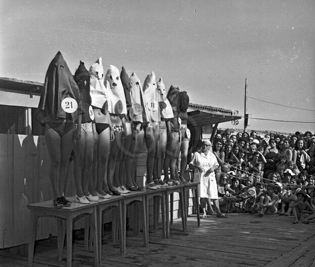 Такі «конкурси краси» проводились у Лондоні до війни. Особи учасниць були приховані, а суддя (природно, чоловік) вибирав переможницю виключно по кісточках.