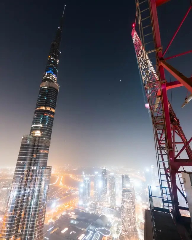 Скелелаз-екстремал заліз на височенний кран у Дубаї під виглядом робітника (5 фото + 1 відео)