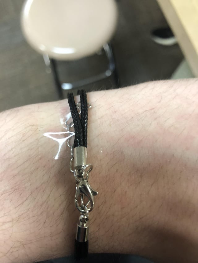Візьміть один кінець прикраси та наклейте його на скотч, а потім акуратно прикладіть до руки та зафіксуйте. Обережно застебніть його.