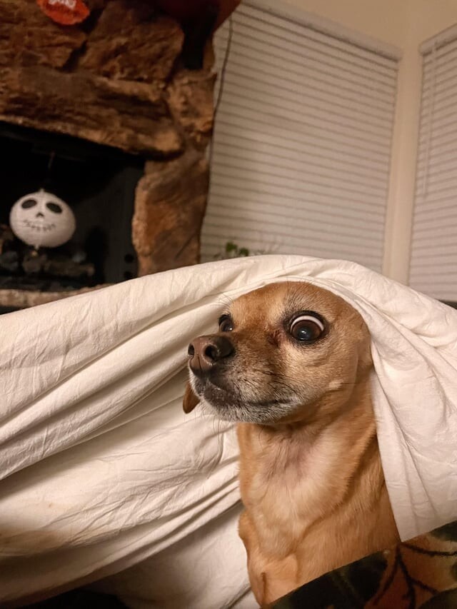 У нашого пса завжди такий вираз морди, коли ми його ловимо на пустощі