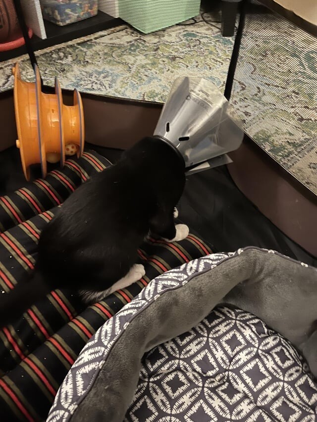 Її ліжко поставили на стіл, поки ми забиралися. Вже чотири години вона не злазить із крісла і гарчить, коли ми до неї наближаємося