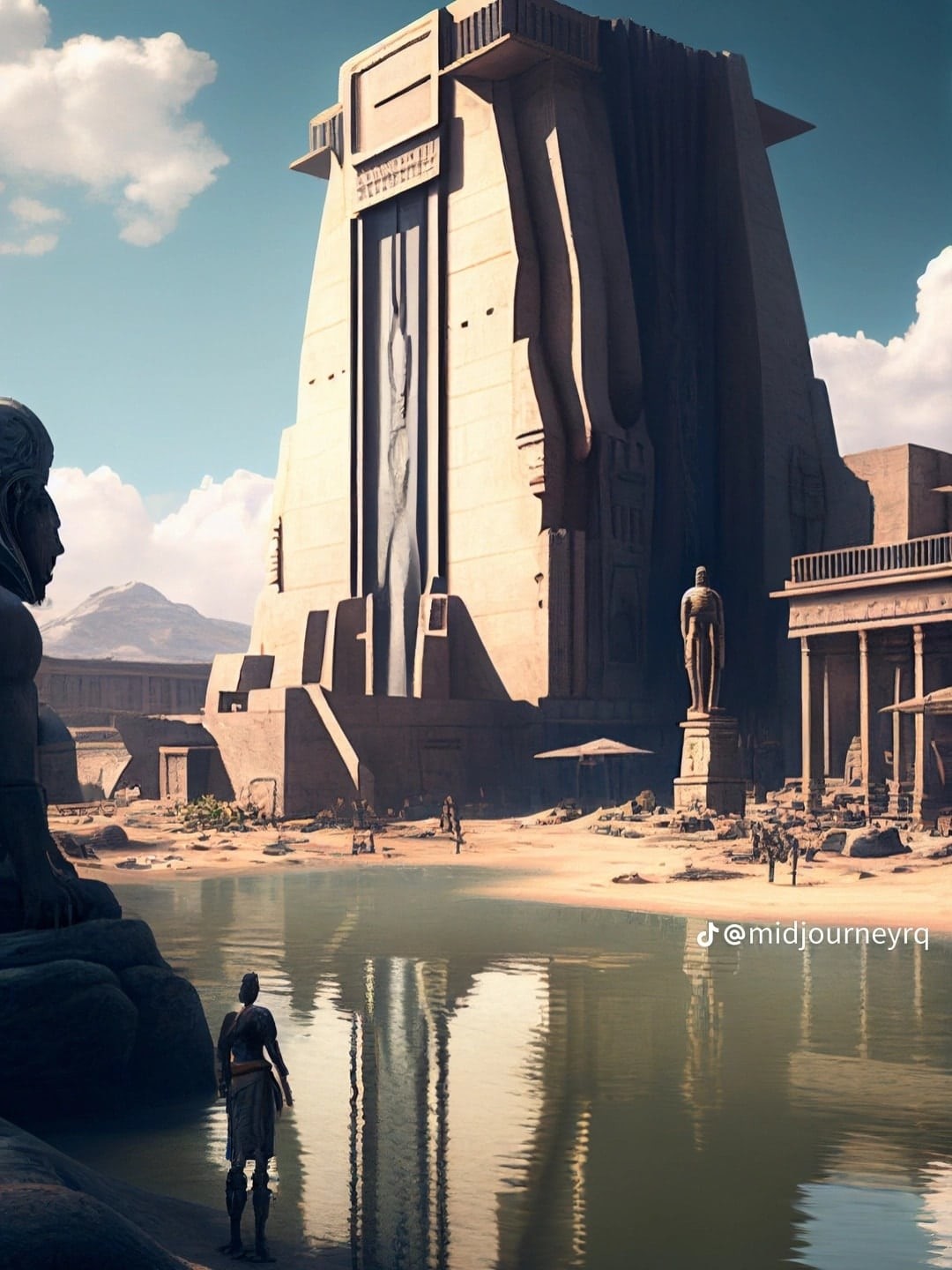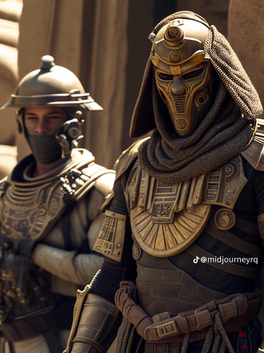 Блогер ТікТок-каналу midjourneyrq дав волю своєї фантазії, і з допомогою нейромережі втілив у життя цю дуже нетривіальну ідею. У Зрештою, ми можемо помилуватися автентично-футуристичною атмосферою Стародавнього Єгипту, ніби той провів відпустку десь у всесвіті «Зоряних воєн»! ????