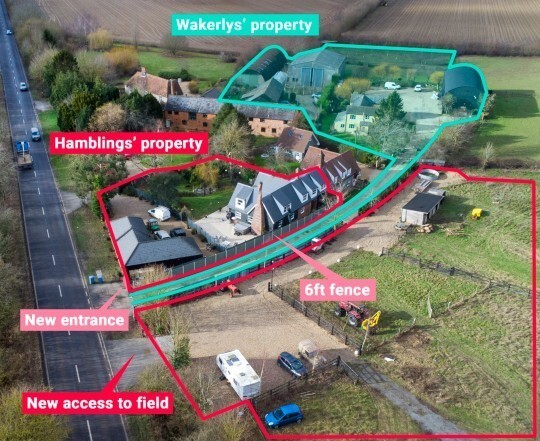 Гері та Керрі Хемблінг, 48 і 44 роки, купили заміський будинок недалеко від Півстеда у Саффолку у 2015 році. Будинок їхньої мрії може похвалитися чотирма спальнями, садом, власною стайнею та полем розміром близько гектара, розташованого навпроти дороги, що належить сусідам - Гаррі та Дженні Уейкерлі.