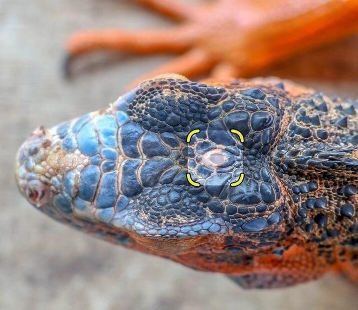 У ігуан три очі, третє око розташоване на маківці. Хоча він не може бачити, але може відчувати світло та рух