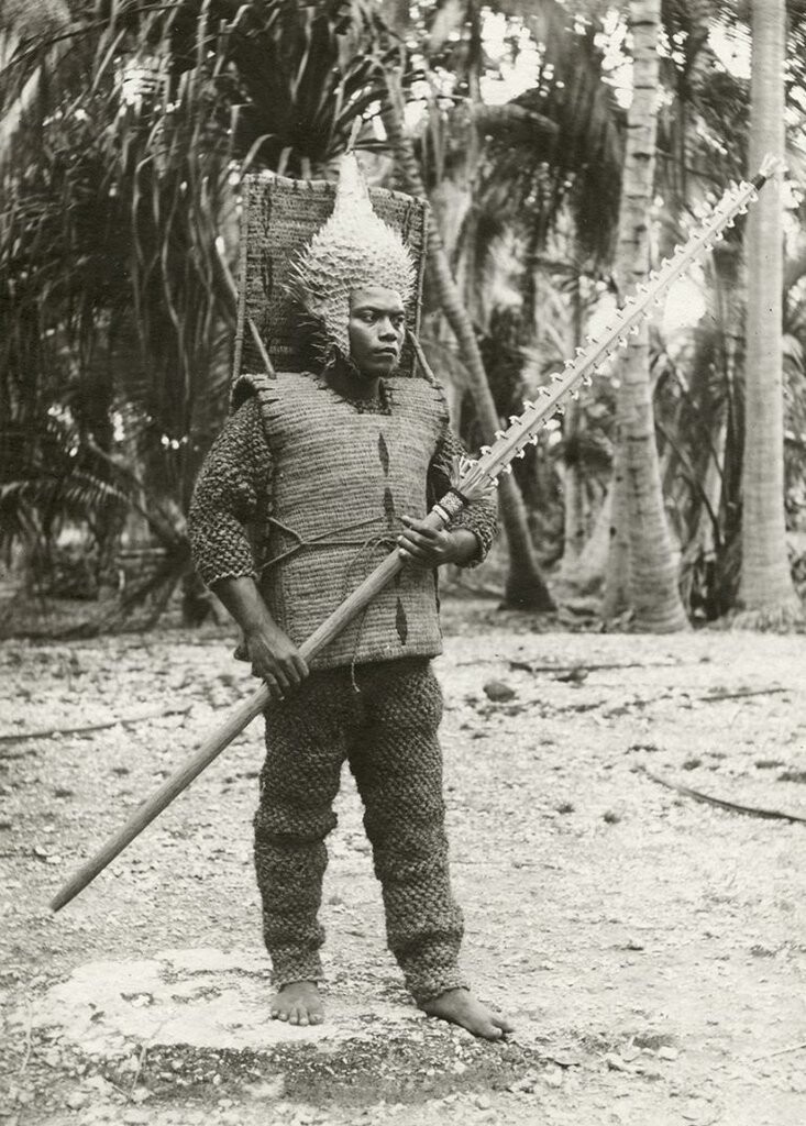 Чоловік у традиційних обладунках Кірібаті, близько 1925 року
