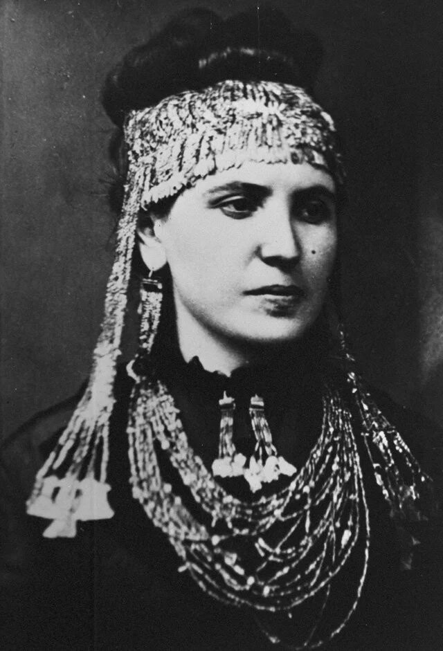 Софі Шліман, дружина археолога Генріха Шлімана, в коштовностях Олени Троянської, 1876 рік
