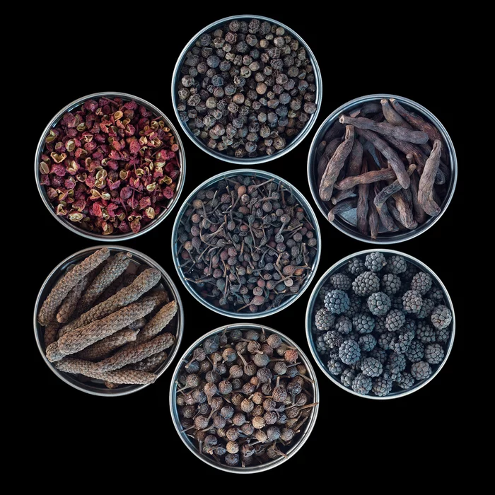 Індійський перець. Пишуть, що смак схожий на акмелу городню. Можливо, не пробував. Мені смак нагадав сиру картоплю. Замість гостроти такий самий ефект як у сичуаньського перцю, лише трохи сильніше.
