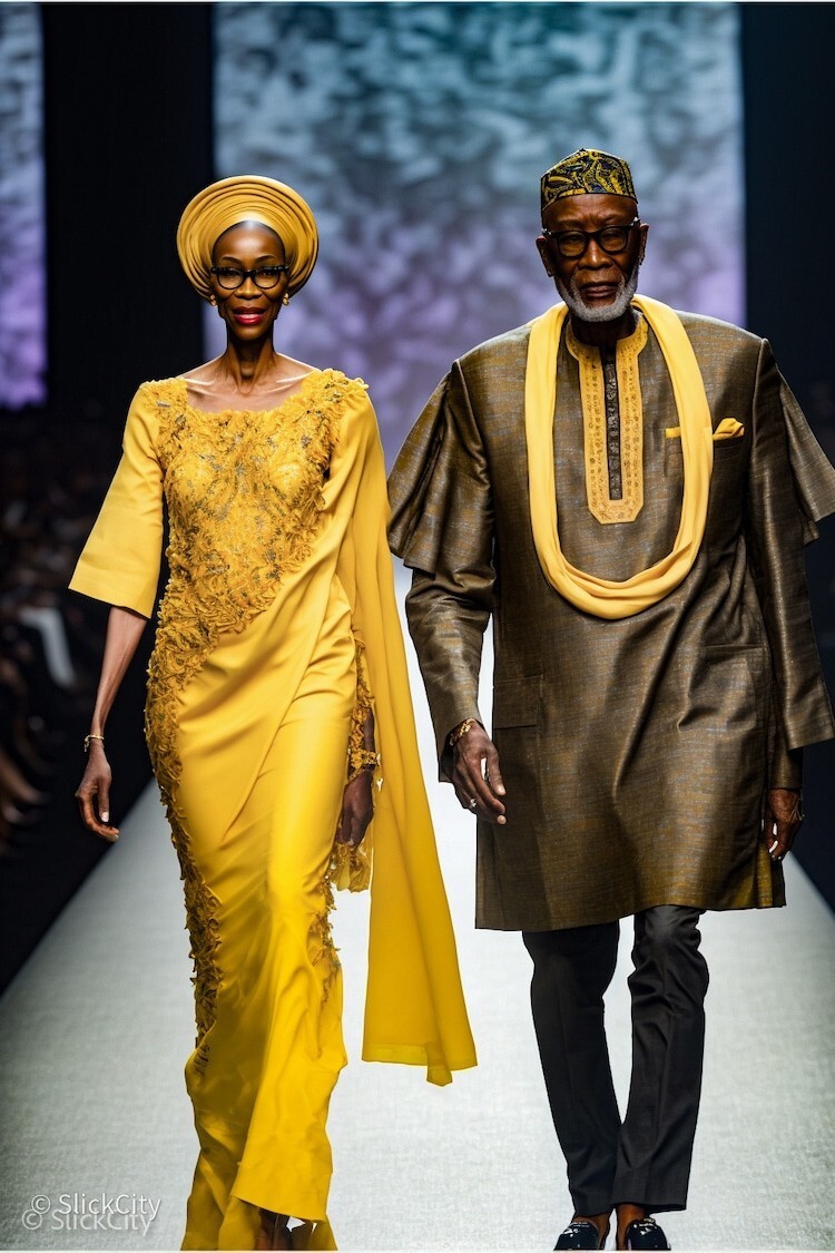 «Я увлекаюсь модой, и мне всегда нравилось экспериментировать, — объясняет Афегбуа. — Я хотел смешать традиционную африканскую нигерийскую моду с чем-то футуристическим, чем-то афро-футуристическим». Персонажи его серии «Показ мод для пожилых» одеты в наряды, сочетающие принты, узоры и роскошные материалы.