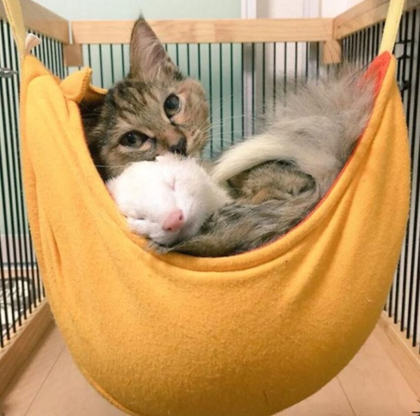 Ви тільки подивіться на цих вихованців, які ж вони кумедні. Як вони мило сплять, як вони їдять та дружать один з одним. Тепер кошеня вже кішечка і це не заважає їй все також любити своїх вихованців.