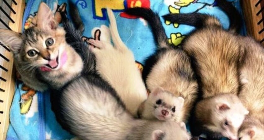 Вдома сім'я вирішила кошеня дати притулок до себе назавжди, але була одна проблема. У будинку в них уже мешкало ціле сімейство тхорів. І ось було питання, як тхори відреагують на цього котика.