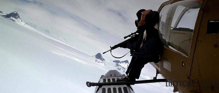 13. Для зйомок моменту, коли Макріді йде до місця, де льоду було поховано інопланетну істоту, використовувалося тло, тобто все на задньому плані – сніг, корабель та й вертоліт – було намальовано.