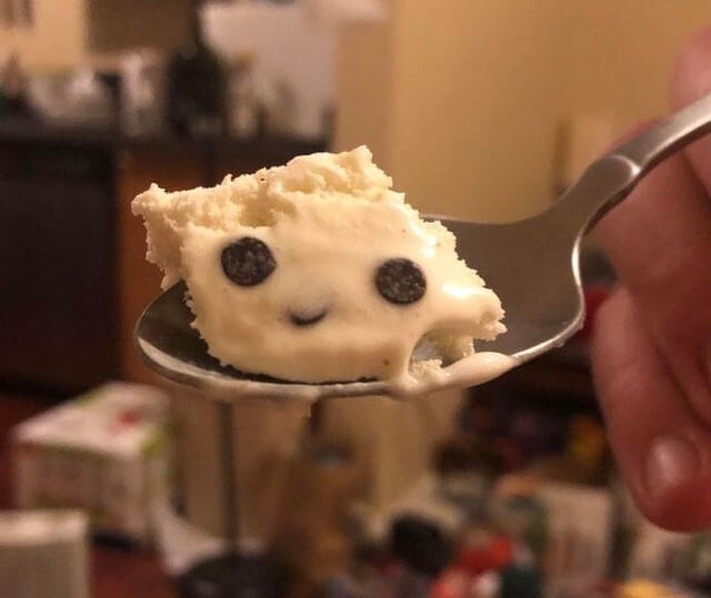 Морозиво з шоколадом крихта посміхається. Подвійне щастя в одній ложці