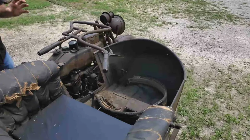 З якоїсь загубленої в часі причини невідомі механіки переобладнали керування мотоцикла так, щоб ним можна було керувати з коляски. У самого мотоцикла немає сидіння, кермо — дивне, кастомне, зміщений, і все ножне та ручне управління було перенесено до коляски.
