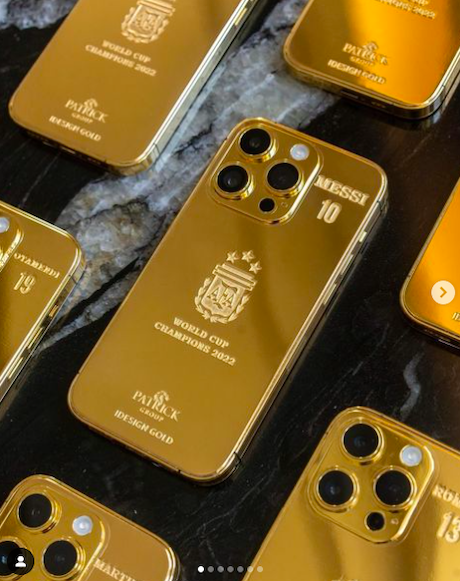 35 золотих iPhone з іменними гравіюваннями купив Ліонель Мессі для всіх, хто допоміг його збірній здобути перемогу в Катарі. Про це повідомив Бенжамен Ліон. Його компанія займається прикрасою телефонів, та саме вона отримала замовлення на гравіювання iPhone. На корпусі кожного вибито ім'я його власника та його ігровий номер, а в центрі на поверхню нанесено зображення логотипу збірної Аргентини та напис "Переможець чемпіонату світу-2022".