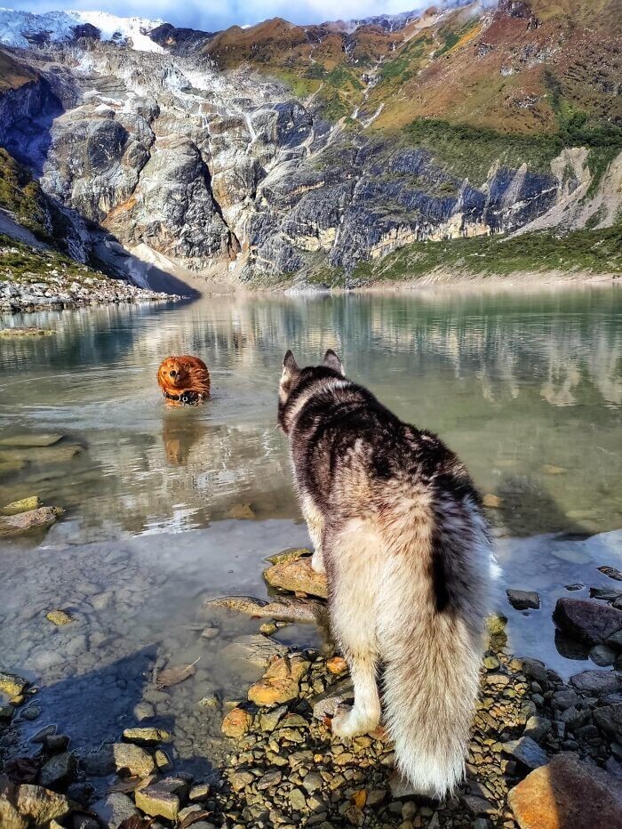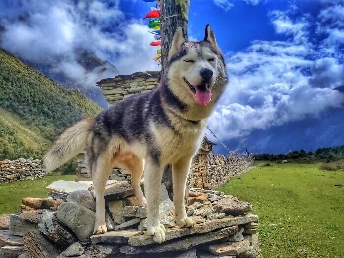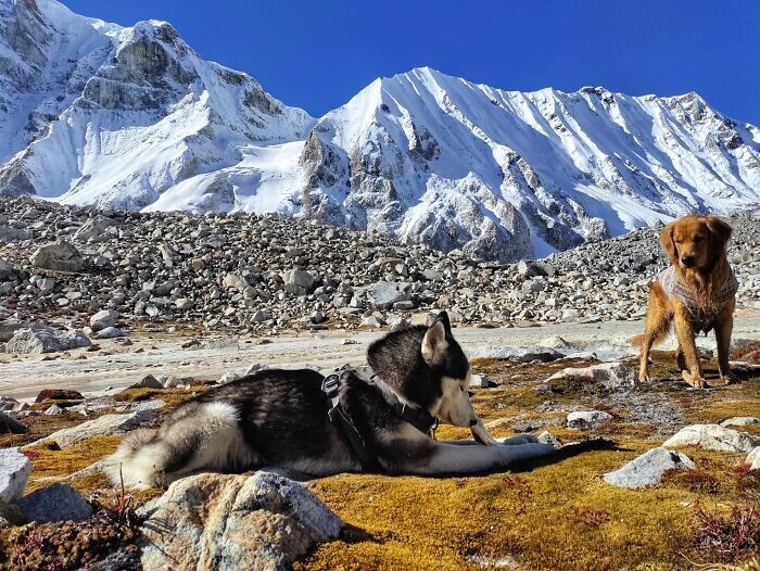 Блогер під ніком awdoutdoor живе в Катманду, столиці Непала. Трекінг та походи - одне з найпопулярніших місцевих напрямів. Одного разу хлопець зауважив, що багато хто бере з собою в походи собак - і вирішив долучити своїх пухнастиків до цього.