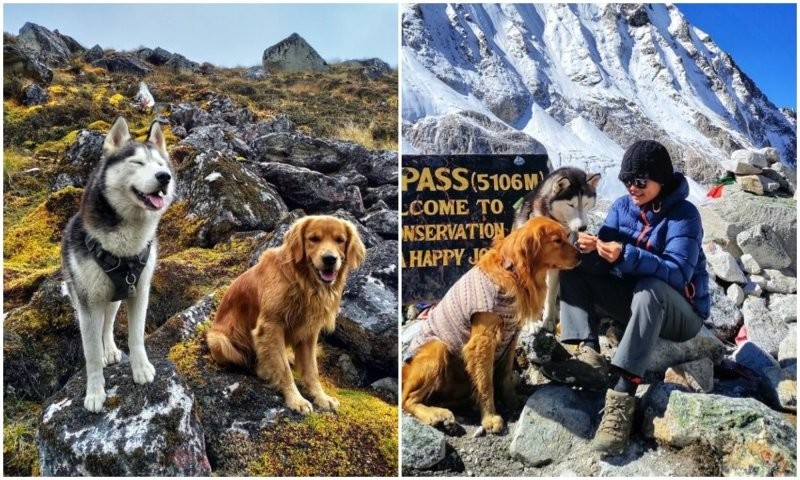"Я цілий рік готував своїх собак до цього високогірного походу навколо восьмої за висотою гори у світі – Манаслу. Ми починали з коротких спільних походів, і я швидко зрозумів, що вони люблять природу. І нарешті, ми вирушили в дорогу! Щоб дістатися до початкової точки, ми цілий день їхали автобусом. Йшли 16 днів поспіль, подолавши 177 кілометрів та пройшовши гірський перевал заввишки 5 тисяч метрів," - розповів господар.