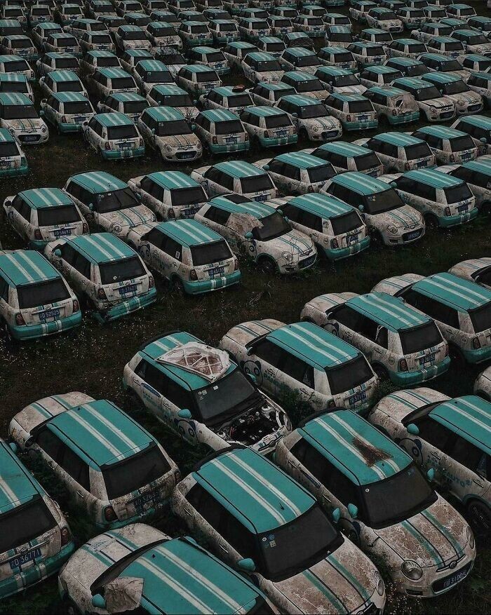 Стоянка електроавтомобілів, занедбана після банкрутства виробника