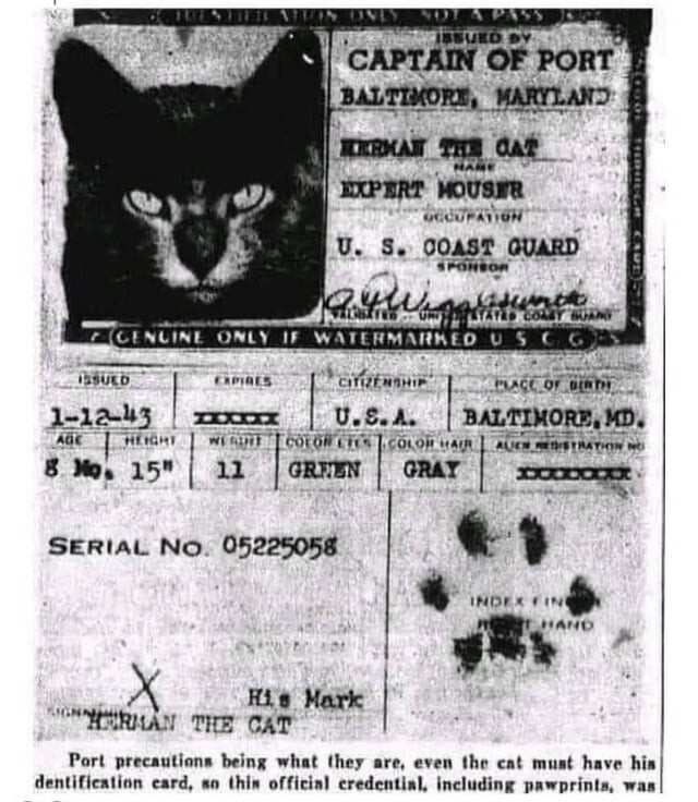 1. У кішок, які до середини ХХ століття плавали на кораблях, щоб полювати гризунів, були свої паспорти, підписані їх відбитками лап