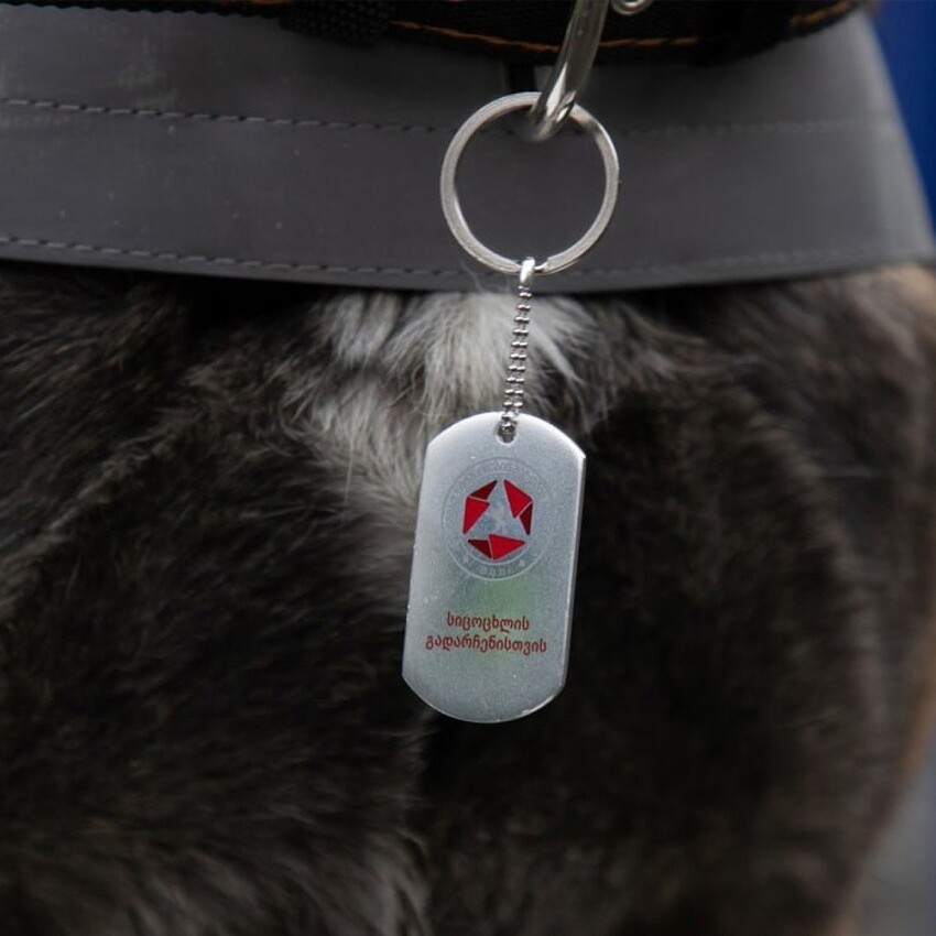 «Собака-рятувальник Тінто служби управління надзвичайними ситуаціями МВС, що допомагає в реагуванні на особливі ситуації, нагороджена спеціальним жетоном „За порятунок життя“», — повідомили у грузинському відомстві.