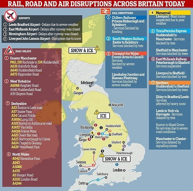 Багато водіїв проігнорували штормове попередження та попереджувальні знаки, в результаті опинилися в багатокілометрових пробках на трасі М62 у Великому Манчестері. Ситуація посилювалася тим, що водії обганяли повільно рухомий транспорт тільки для того, щоб застрягти на смузі зі свіжим снігом.