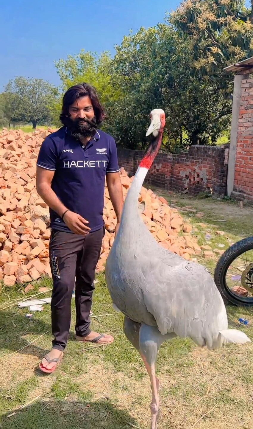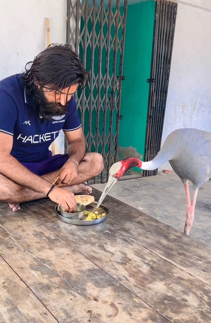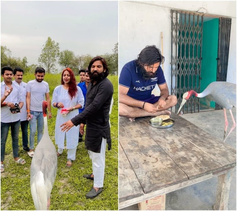 Мохаммад Аріф рік тому знайшов пораненого журавля-саруса на своєму полі в штаті Уттар-Прадеш, Індія, забрав птах, що стікає кров'ю. додому і доглядав її за допомогою домашніх коштів.