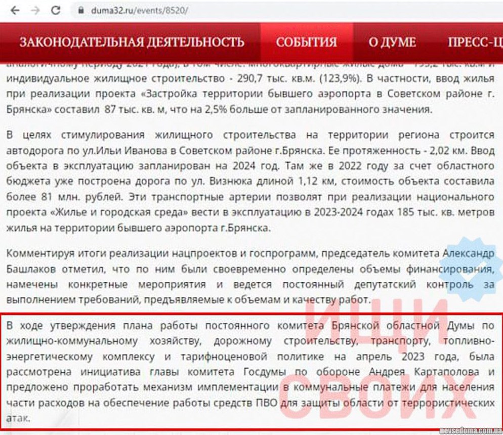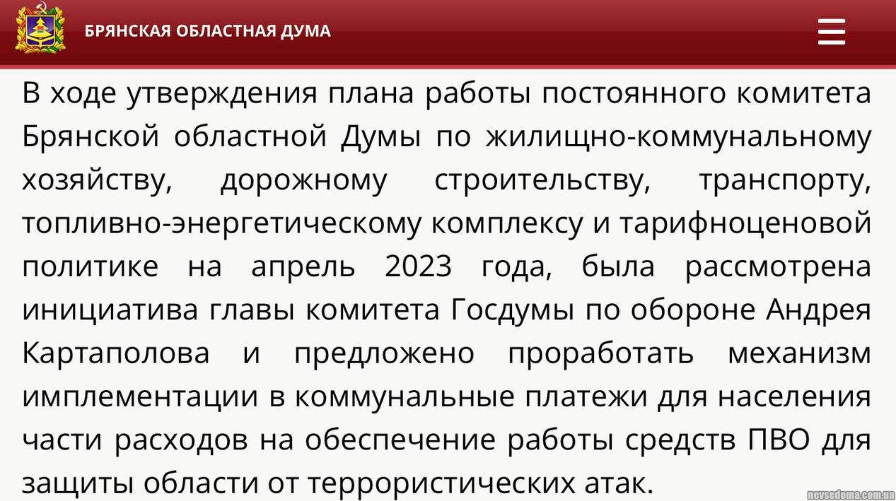 - У Брянській області депутати хочуть змусити мешканців платити за ППО. Витрати планується імплементувати у платіжки за ЖКГ — Ateo Breaking