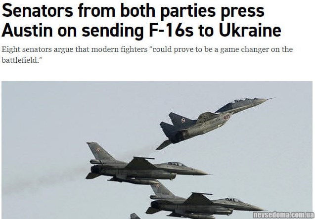 - Сенатори від обох партій США вимагають від Пентагону відправки винищувачів F-16 до України, — Politico.