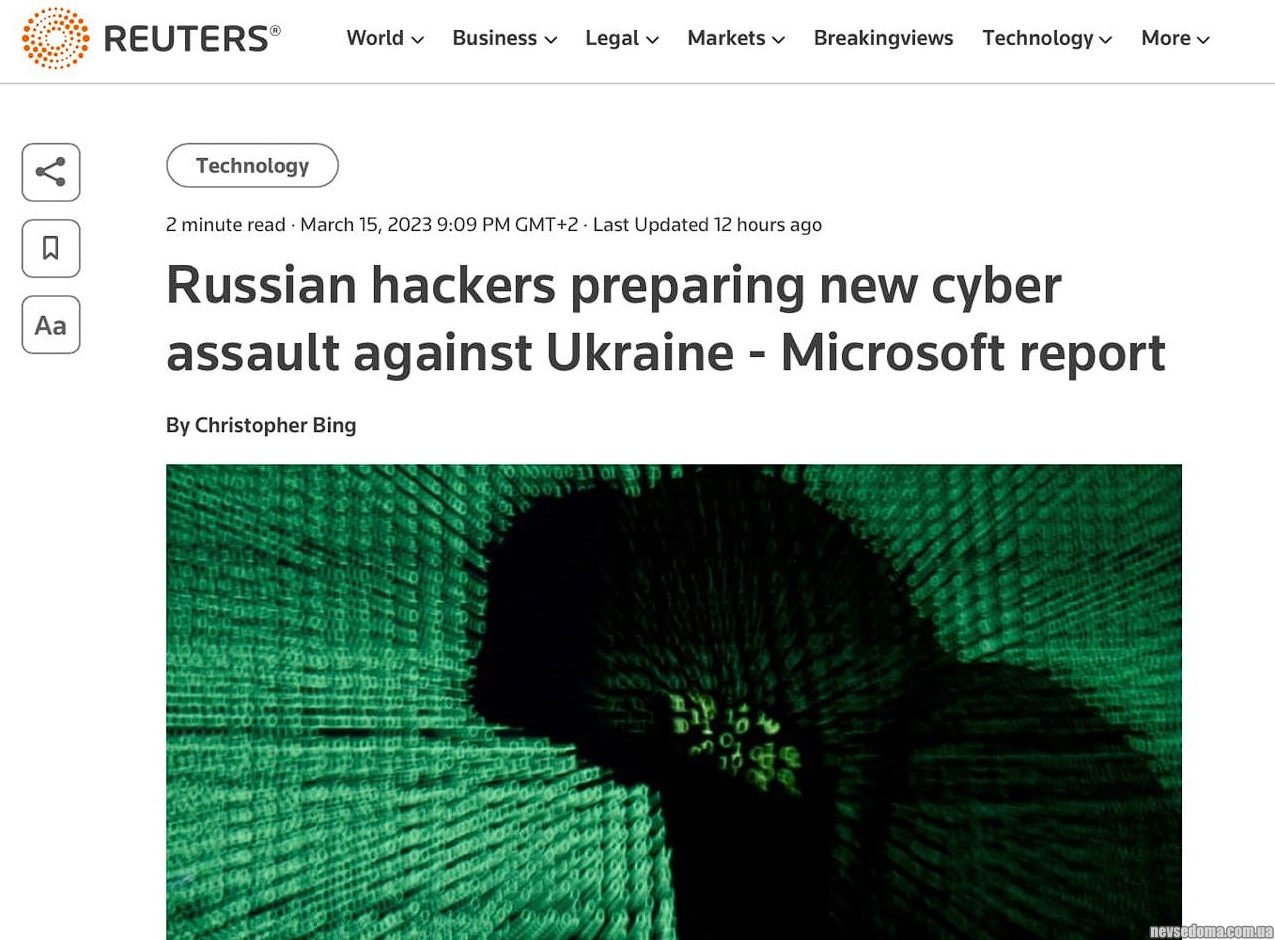 - Російські хакери готують нову хвилю кібератак на Україну, — Reuters із посиланням на звіт Microsoft.