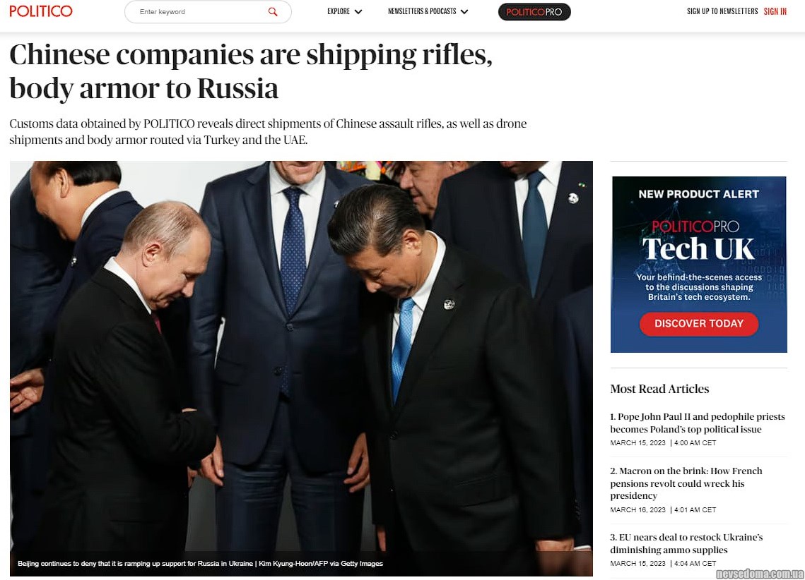 - Китайські компанії під час війни в Україні продавали РФ гвинтівки та бронежилети, — Politico