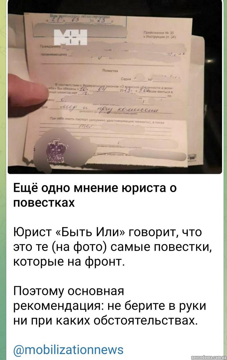 - У зв'язку з масовим врученням повісток по всій Росії, ще раз нагадую простими словами: що таке будь-яка повістка і що таке військкомат