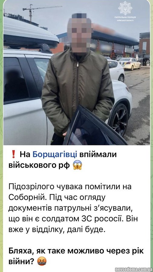 - Солдата РФ затримала поліція на західній частині Києва. Бої йшли на північ, так що хлопець майже рік відсиджувався, може навіть роботу вже знайшов...