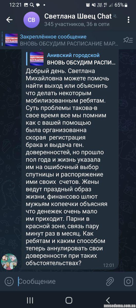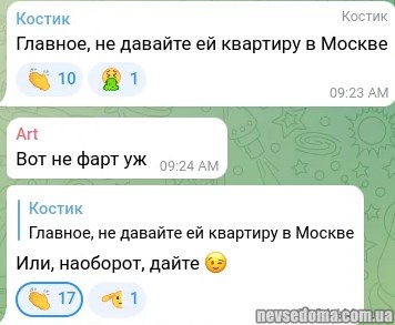 - Незабаром за житлову площу будуть на сусіда доносити. Та й дружина на чоловіка там, чи навпаки. Теща, якщо щось теж може. Чи то ще буде