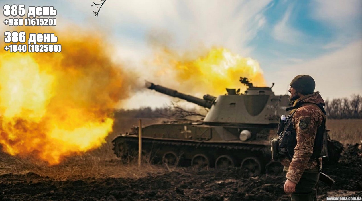 -0 Плюс 1040 визволителів безглуздо померли на війні в Україні та отримали вічне тавро ганьби. Загальна кількість сягнула 162 560