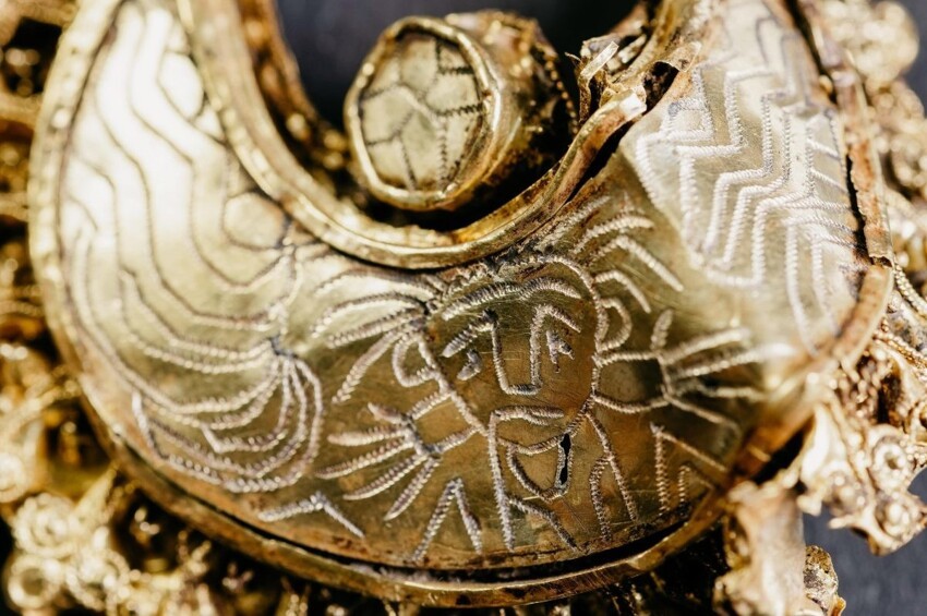 Історик Лоренцо Рюйтер, який виявив скарб, одразу повідомив про знахідку регіональної влади. Чоловіку довелося протягом двох років мовчати про своє відкриття, поки експерти музею вивчали та очищали коштовності. Лише нещодавно прикраси вперше представили публіці та відправили на виставку. Найцікавіші з усіх знайдених прикрас сережки-підвіски. Чотири великі сережки у формі півмісяця належать до 11 віці. Істориків залучили цікаві візерунки та постаті, вигравірувані на них (фото нижче). Експерти встановили, що ці сережки носили не на вухах. а швидше прикріплювали до капюшона чи пов'язки на голову.