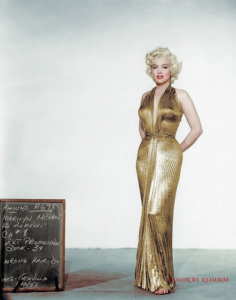 Цікава історія вийшла із золотою сукнею, яку можна побачити в коротенькій сцені танцю у фільмі "Джентльмени воліють блондинок". Застібки у нього не було, тому на зйомках сукня просто зашили на актрисі, а після команди "Стоп! Знято!" розпороли.