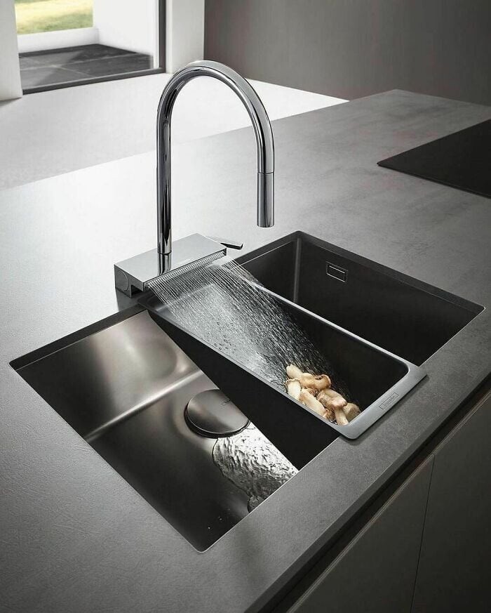 Щоб не рухати важкі каструлі туди-сюди, дизайнер зробив рухомий кран прямо над плитою