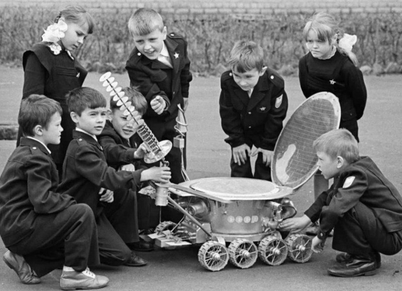 Жовтяни з моделлю "Луноход-1". СРСР. Друга половина 1970-х