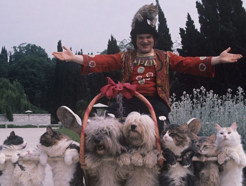 Юрій Куклачов із дресованими тваринами, 1978 рік