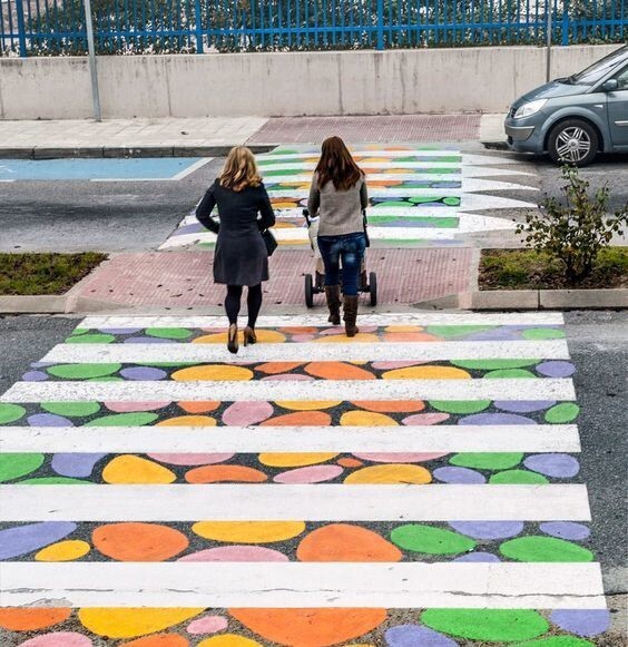 3. Так дістатися на інший бік стає безпечніше: адже барвиста пляма виділяється на асфальті