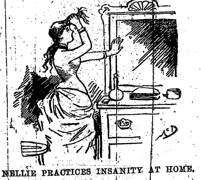 Ідея була шаленою, але Неллі із задоволенням погодилася і почала готуватися. Дівчина відмовилася від догляду за собою, перестала митися і розчісувати волосся, ходила в рвані і годинами відпрацьовувала перед дзеркалом образ схибленої: витріщала очі, дивилася в порожнечу безглуздим поглядом, мукала, блукала по дому ночами. Мешканці притулку для бездомних, де квартирувала журналістка під прикриттям, повірили у божевілля і викликали поліцію.